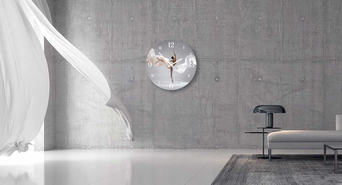 Entdecken Sie die Kombination aus einem individuellen Design und erstklassiker Oberflächenbeschaffenheit. Ihr Foto wird direkt auf das Material der Wanduhr gedruckt. Sie haben die Wahl aus exklusiven Premium-Oberflächen: Acrylglas, Alu-Dibond oder Butlerfinish (gebürstetes Alu-Dibond)