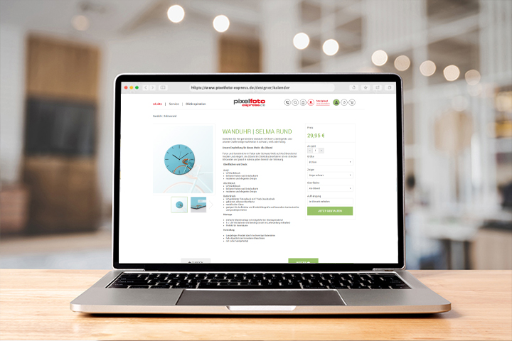 Mit dem Online Produktesigner von PixelfotoExpress können Sie Ihre persönliche Wanduhr sofort unkompliziert mit Ihrem Wunschfoto online gestalten. Einfach das gewünschte Design vorab auswählen und Foto vom Handy oder Computer hochladen.