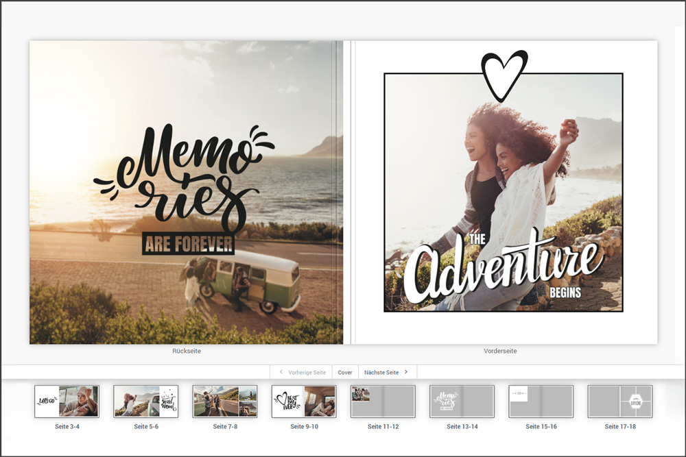Nutzen Sie im Online-Designer Ihre Wunschvorlage und erstellen Sie mit praktischen Werkzeugen ein Fotobuch, das perfekt zu Ihnen passt. Ob Sie auf bewährte Gestaltungsvorlagen zurückgreifen oder sich für ein Blanko-Fotobuch mit maximaler Gestaltungsfreiheit entscheiden – Ihrer Kreativität sind keine Grenzen gesetzt.