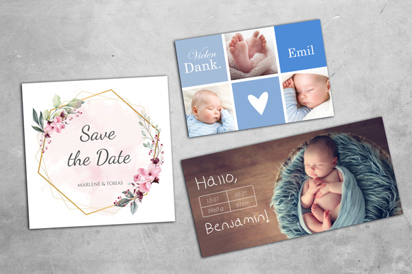 Für Geburtstage, Hochzeiten, Feiertage oder andere besondere Momente stehen vielseitige Grußkarten im Digitaldruck zur Verfügung, die individuell gestaltet werden können.