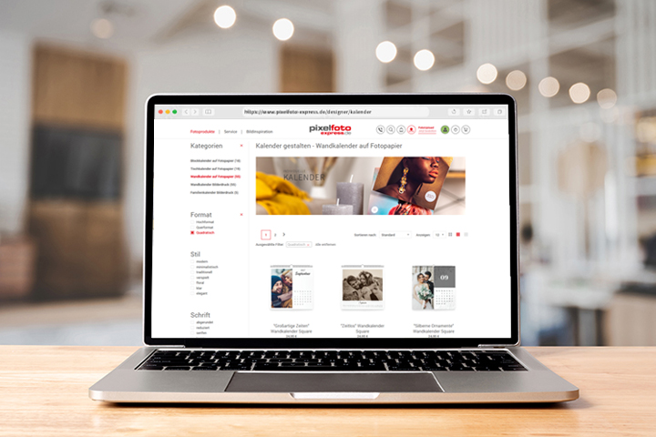 Um einen Fotokalender im quadratischen Format 30x30 cm zu erstellen, können Sie zunächst die Website www.pixelfoto-express.de besuchen und die Kategorie Fotokalender auswählen. Öffnen Sie mit Klick auf "Jetzt bestellen" den Designer und wählen Sie das quadratische Format in der Filterfunktion aus. Suchen Sie eine passende Vorlage aus und laden Sie Ihre Bilder hoch. Anschließend können Sie den Kalender nach Ihren Wünschen gestalten oder sich auch gestalten lassen. Es war noch nie so einfach, einen individuellen Fotokalender zu erstellen!