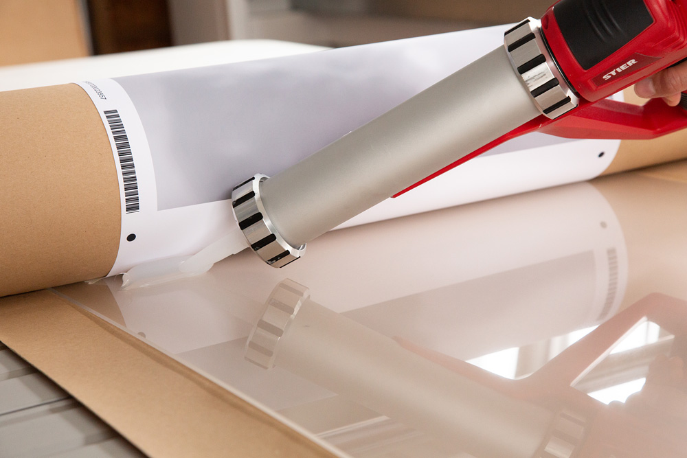 Die Silikonkaschierung ist ein hochwertiges Veredelungsverfahren, bei dem das gedruckte Motiv mithilfe von flüssigem Silikon vollflächig mit der Acrylglasplatte verbunden wird. Das Silikon wird gleichmäßig aufgetragen, sodass eine absolut blasenfreie und klare Verbindung entsteht. Anschließend folgt eine kontrollierte Trocknungs- und Aushärtungsphase.